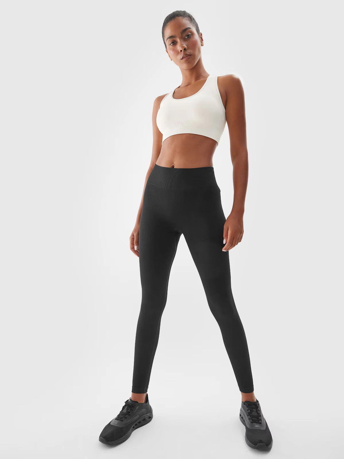Legginsy sportowe damskie są wykonane z materiału syntetycznego, który zapewnia trwałość i jest łatwy w pielęgnacji. Dzięki dodatkowi elastanu (9%) są rozciągliwe i wygodnie układają się na sylwetce. Legginsy na siłownię 4F damskie z szybkoschnącymi włóknami w technologii 4FDry, które wspierają odprowadzanie wilgoci z dala od ciała. Wykonane w elastycznej, bezszwowej konstrukcji, która nie powoduje otarć i podrażnień. Klasyczny fason bez kieszeni. Elastyczny pas bez regulacji.