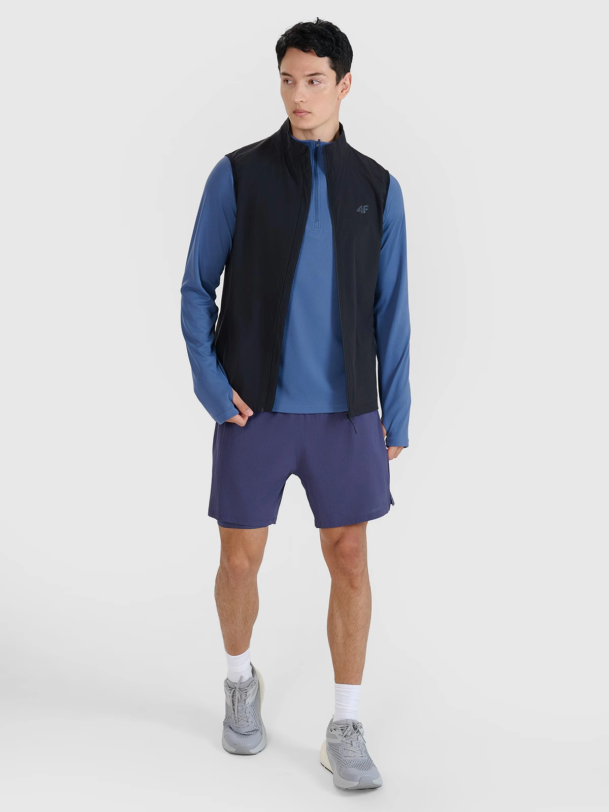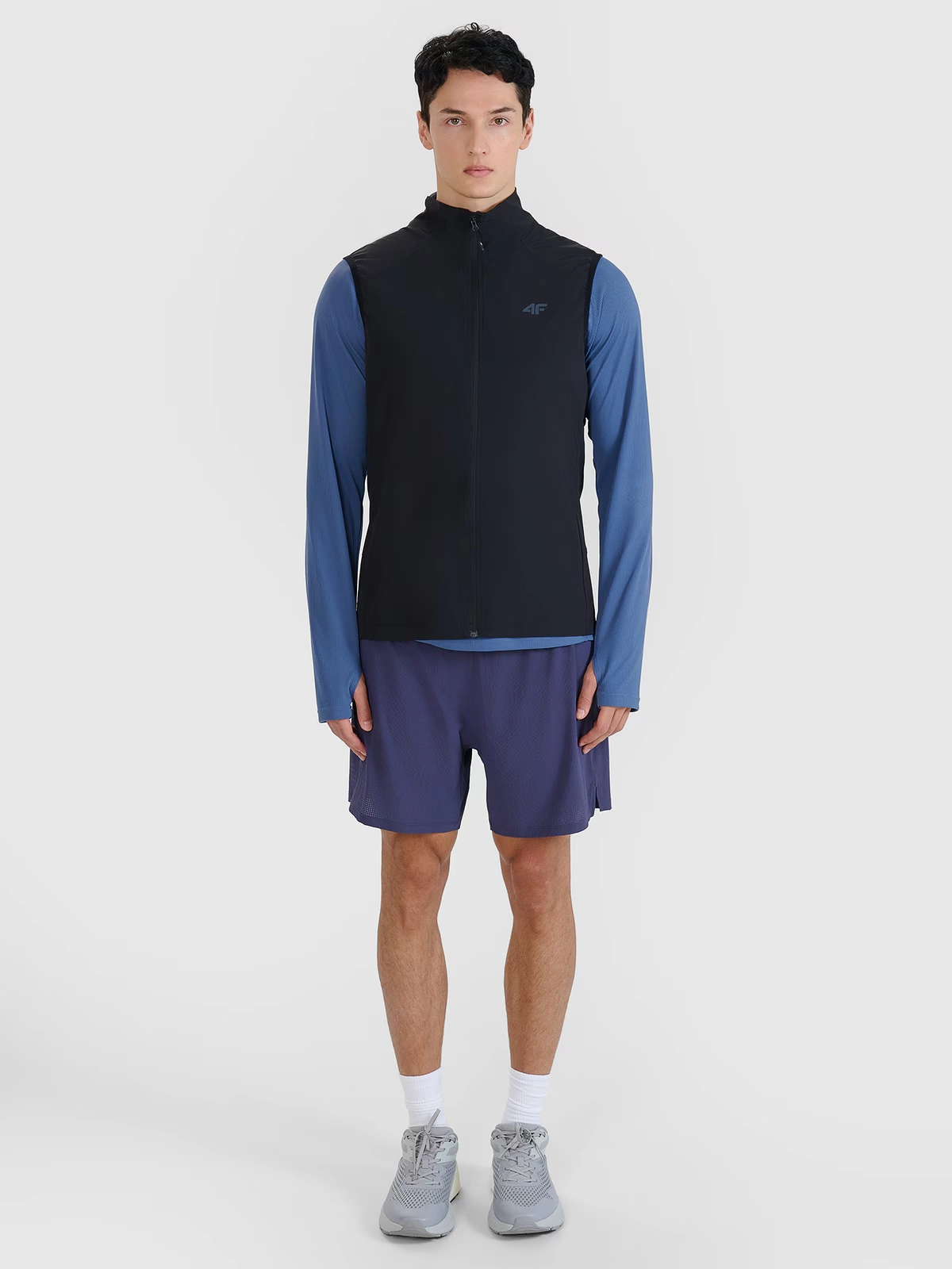Męska kamizelka biegowa 4F to funkcjonalna warstwa wierzchnia przeznaczona do treningów w cieplejsze dni. Dopasowany krój typu slim przylega do sylwetki, a klasyczna długość do bioder nie ogranicza ruchów podczas biegu w terenie.