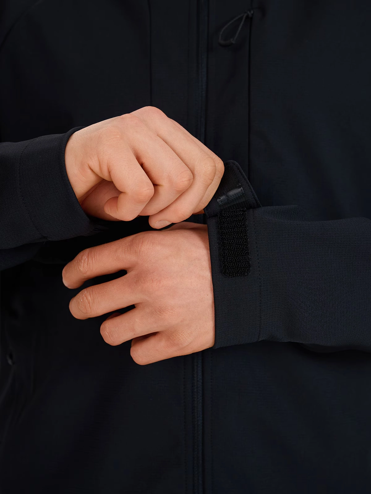 Wysoki kołnierz i mankiety z regulacją na rzep – ochrona przed chłodem i wiatrem
