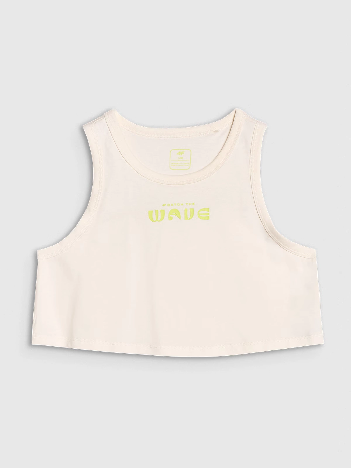 Dzięki szerokim otworom na ramiona i wakacyjnemu nadrukowi „Catch The Wave”, top świetnie wpisuje się w letni klimat – idealny zarówno na plażę, jak i do codziennego noszenia.