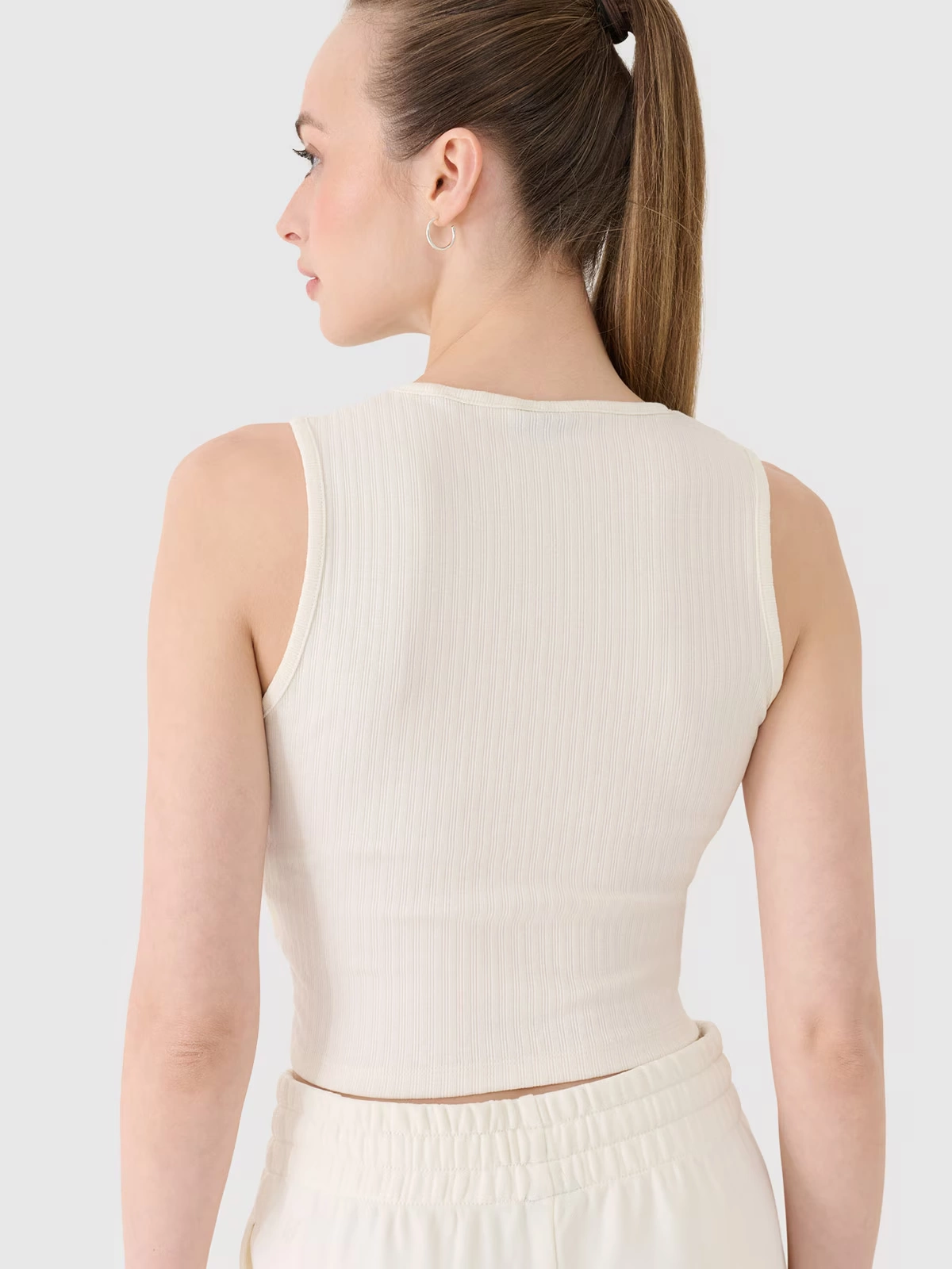 Prążkowana dzianina – pionowe, widoczne prążki nadają topowi nowoczesny charakter i subtelnie modelują sylwetkę