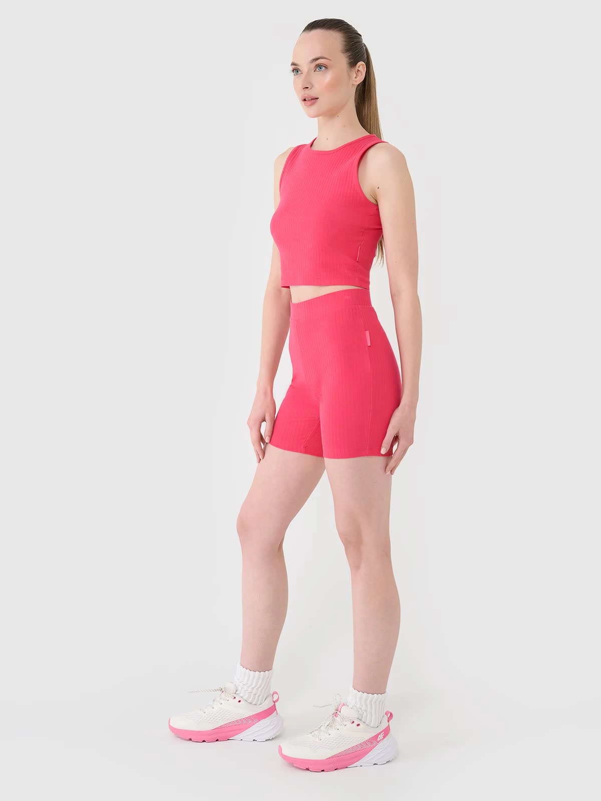Krótkie legginsy damskie to świetny wybór zarówno do casualowych, jak i sportowych stylizacji. Dopasowany krój slim podkreśla sylwetkę, a wysoki stan zapewnia lepsze krycie i komfort w codziennym użytkowaniu.