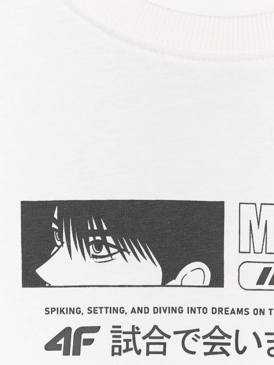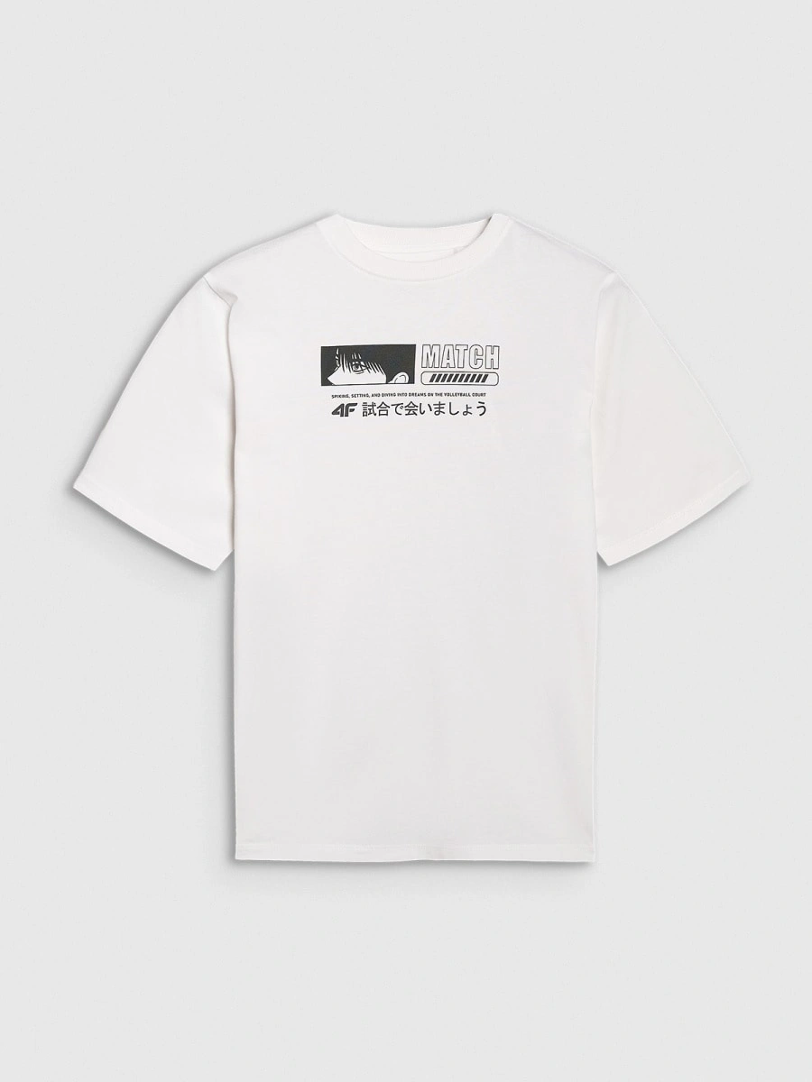 T-shirt oversize z nadrukiem chłopięcy 4F 4FJRAW25TTSHM3065-10S