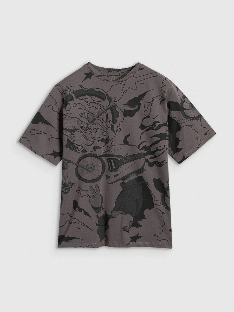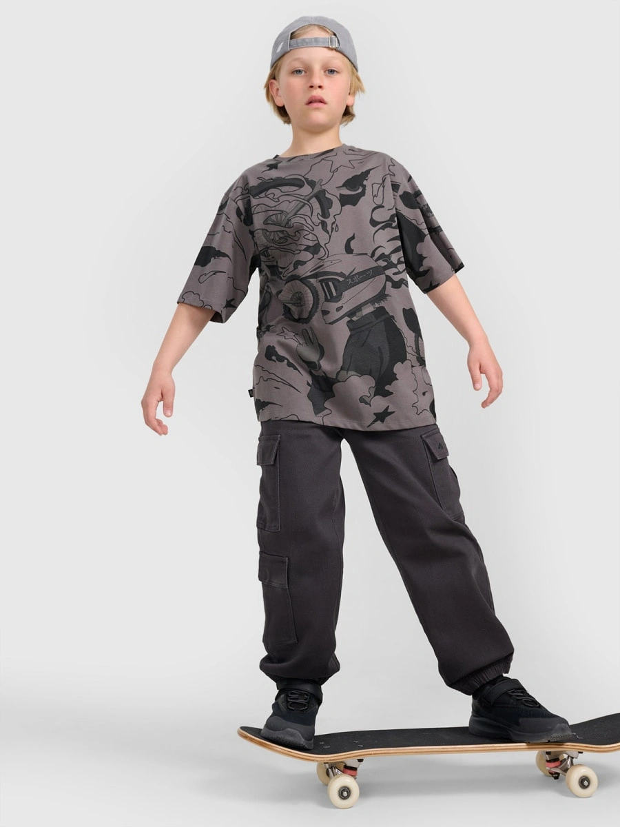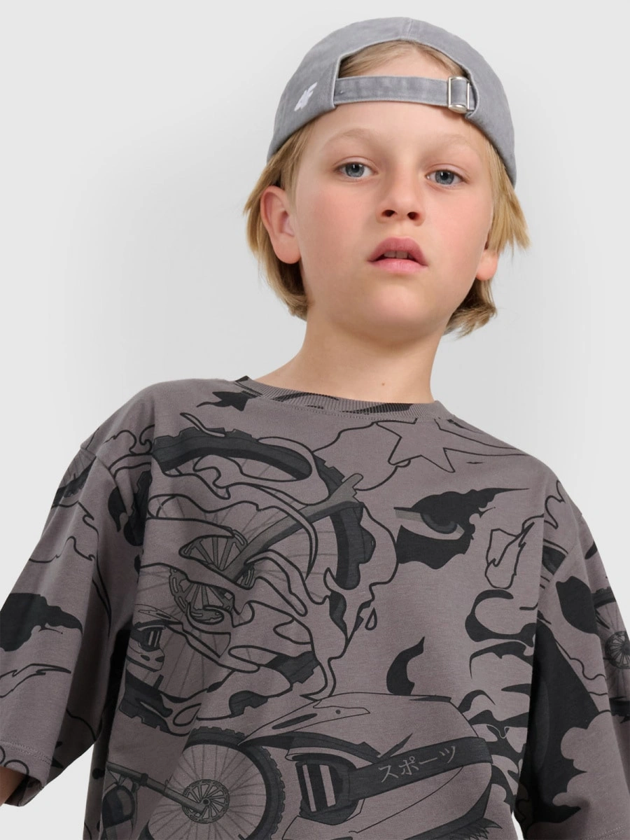 T-shirt oversize z nadrukiem chłopięcy 4F 4FJRAW25TTSHM3063-90A