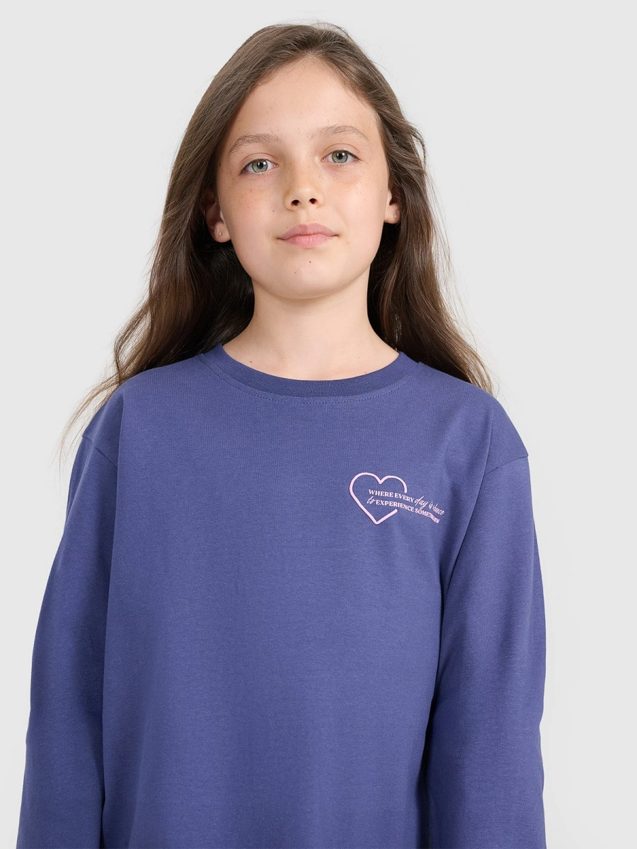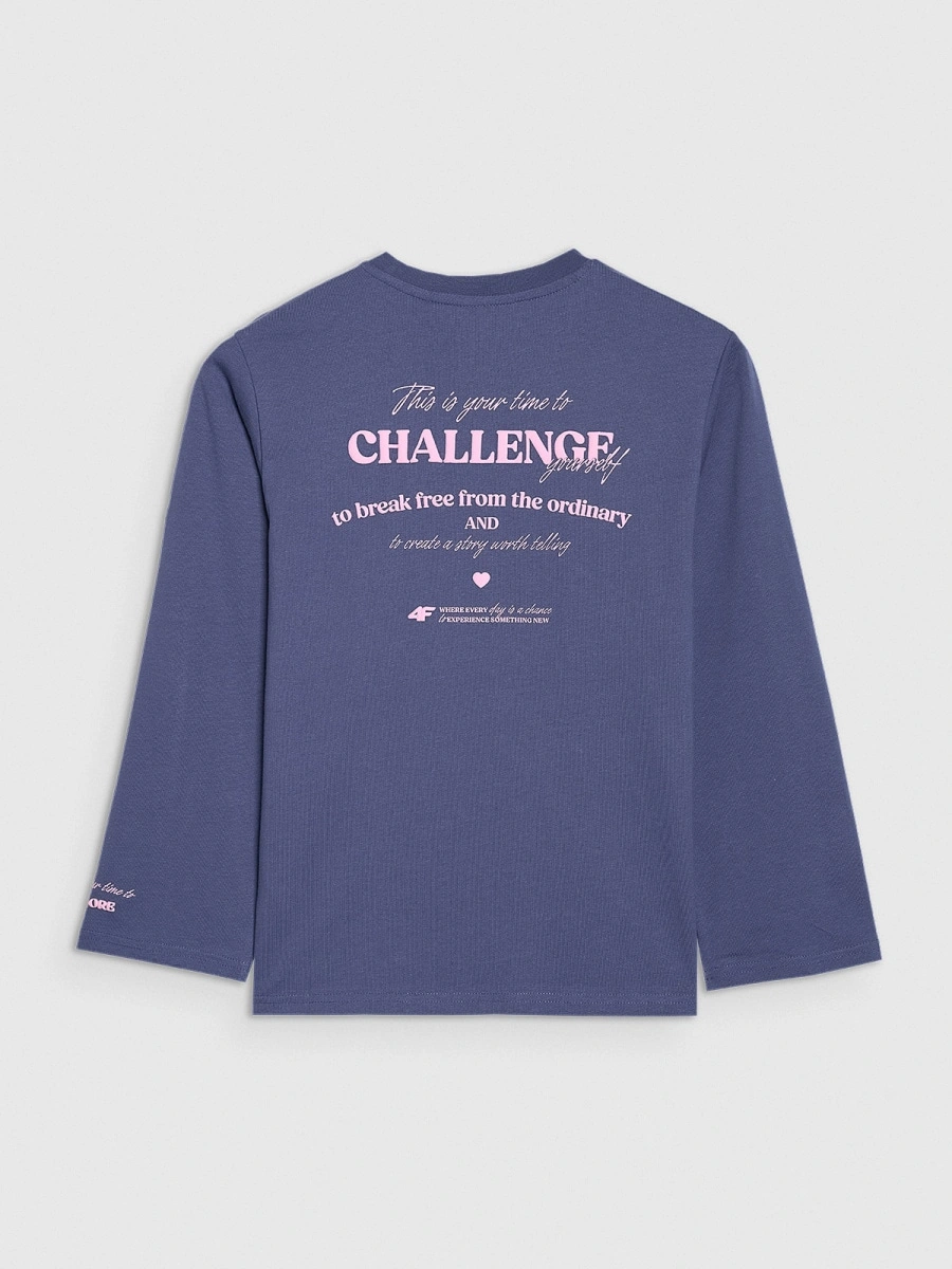 Longsleeve oversize z nadrukiem dziewczęcy 4F 4FJRAW25TLONF589-33S