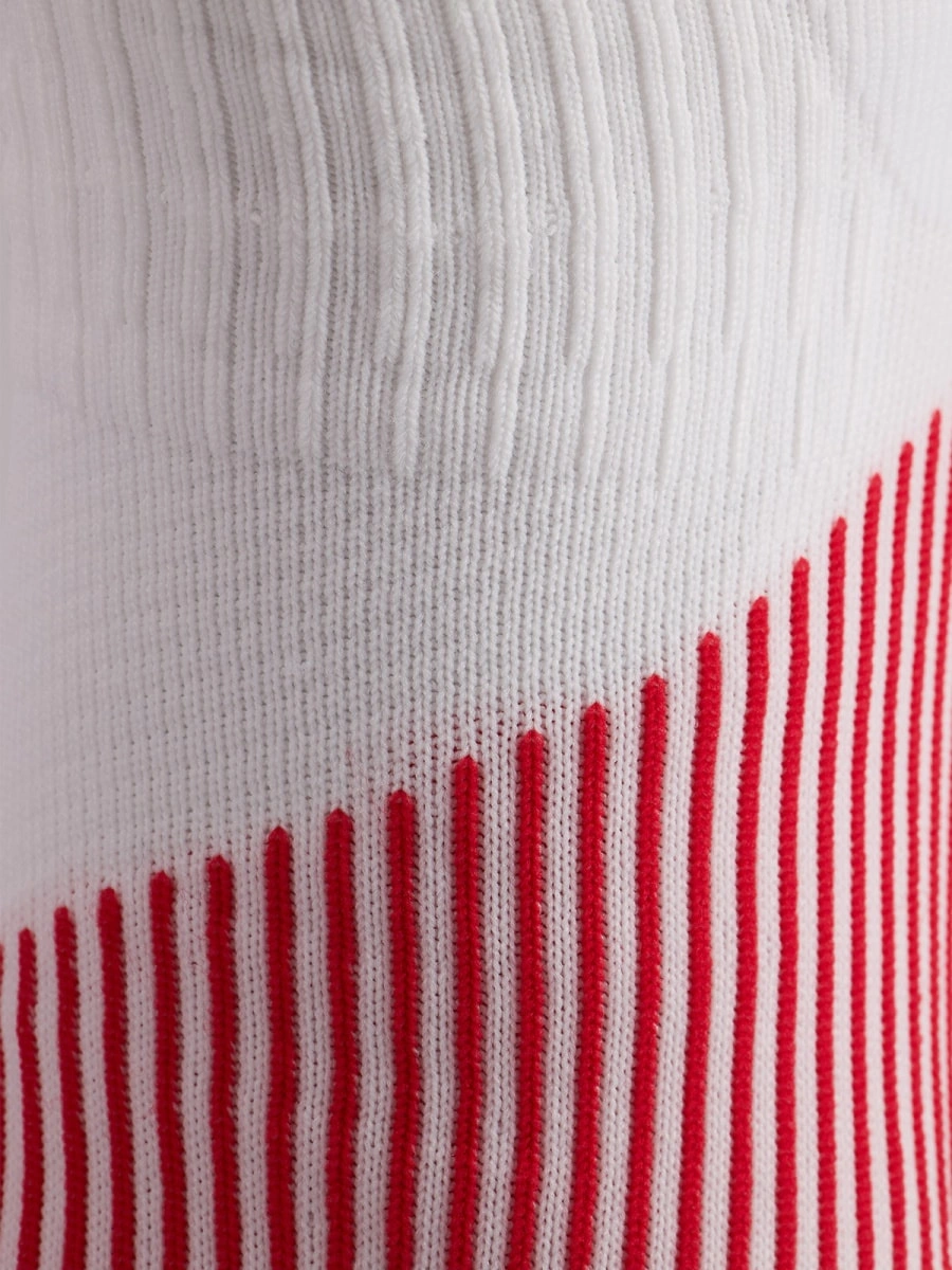 - Krój przed kolano – ochrona łydki i idealne dopasowanie do butów narciarskich