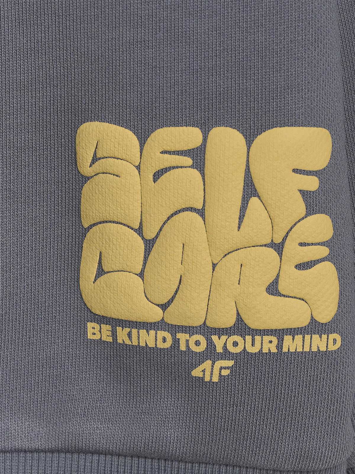 Materiał składa się w 82% z bawełny, co zapewnia miękkość i naturalny komfort, oraz w 18% z poliestru, który zwiększa odporność na zużycie i pomaga zachować fason na dłużej. Elastyczne mankiety i dół ze ściągaczem dbają o dopasowanie, a nadruk „Self Care Be Kind to Your Mind” podkreśla styl bluzy.