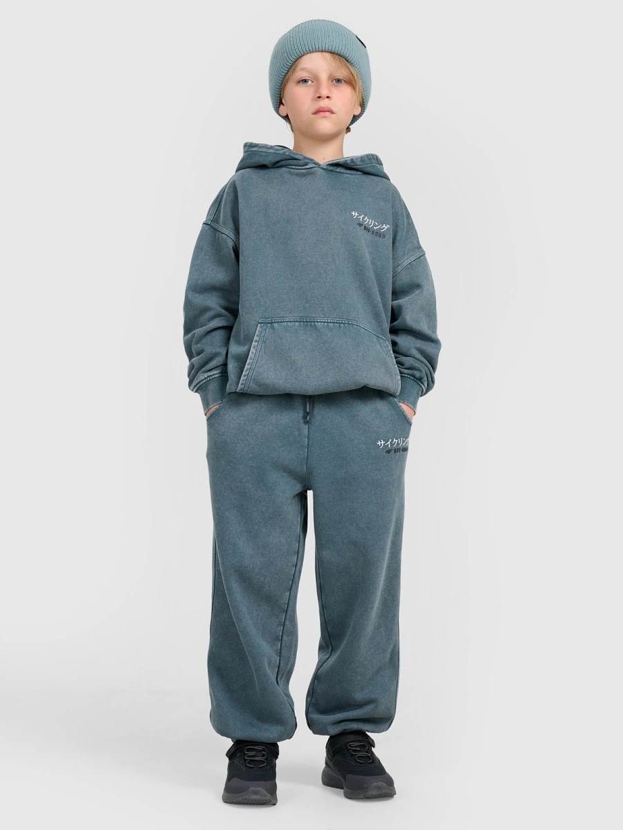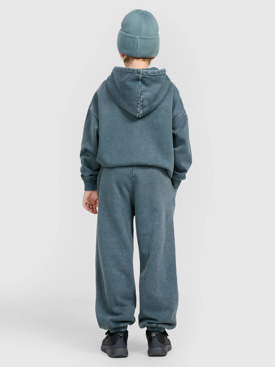 Dresy chłopięce 4F z efektem sprania to doskonały wybór do szkoły, na spacer lub odpoczynek. Miękka dzianina z czesanym wnętrzem gwarantuje przyjemne ciepło, a luźny krój oversize zapewnia swobodę ruchów. Dzięki elastycznym ściągaczom i regulowanemu pasowi spodnie doskonale dopasowują się do sylwetki, pozostając wygodne przez cały dzień.