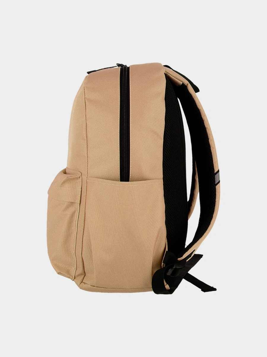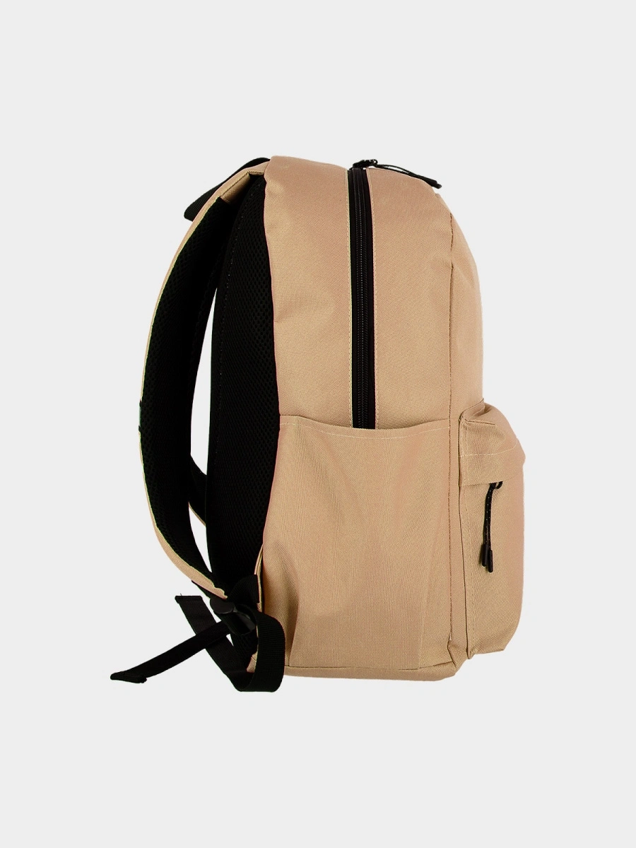 Plecak został wykonany z materiału syntetycznego o gładkiej powierzchni, który cechuje się trwałością i łatwą pielęgnacją. Zewnętrzna warstwa została zabezpieczona hydrofobową impregnacją, która spowalnia wchłanianie wilgoci – woda skrapla się na powierzchni materiału i swobodnie po niej spływa, chroniąc zawartość plecaka przed deszczem.