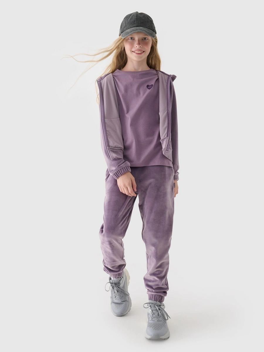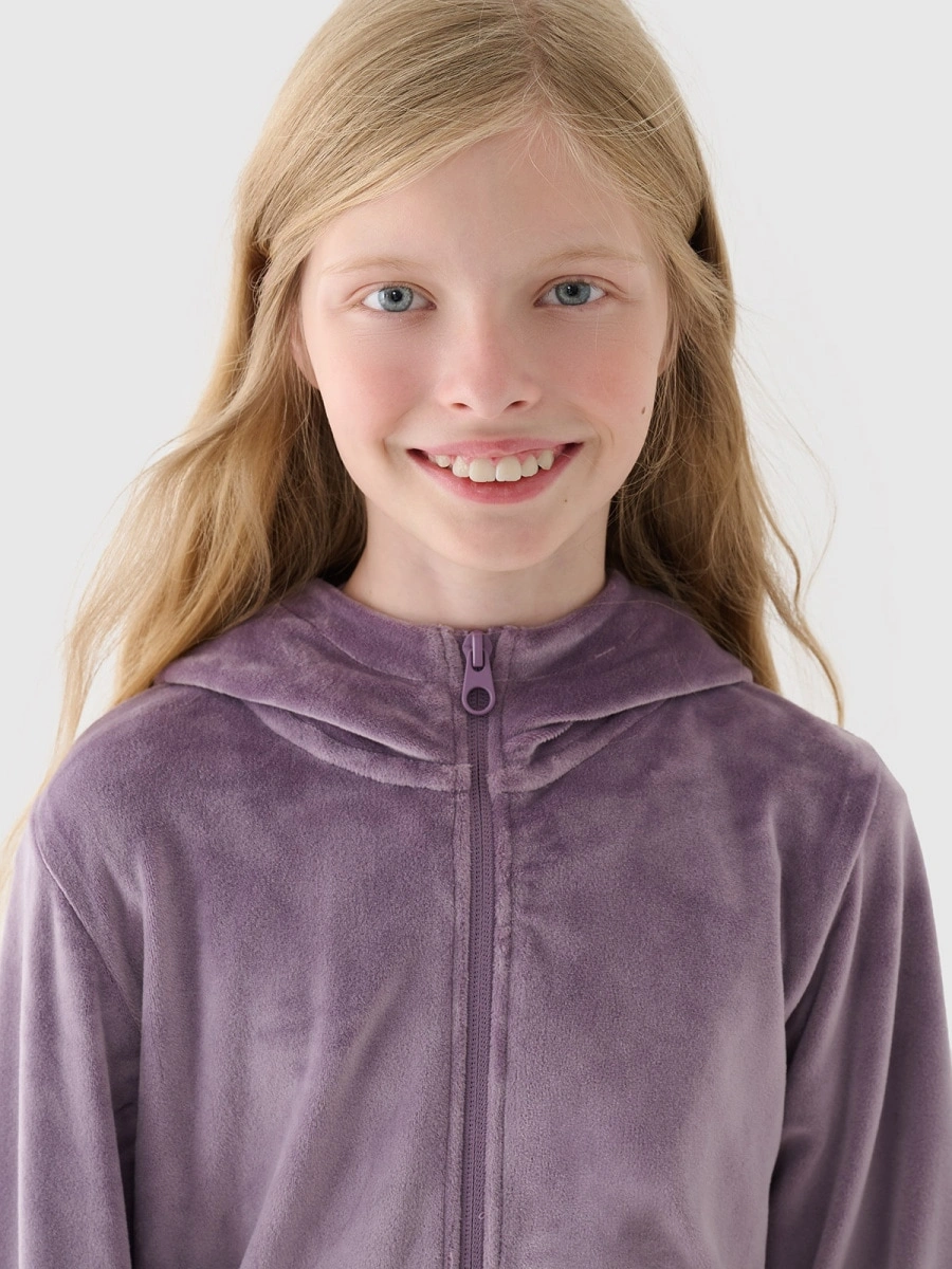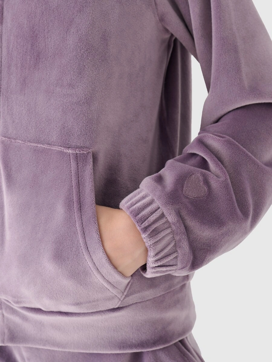 Bluza dresowa z weluru rozpinana z kapturem dziewczęca 4F Junior 4FJWAW24TSWSF1217-51S